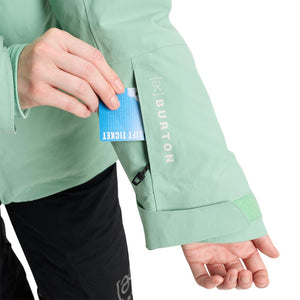 Down heat meets proven storm protection to make snowboarding's highest performance puffy. Period. The women's Burton [ak] Flare GORE-TEX 2L Down Jacket is your golden ticket for staying warm, dry, and riding longer. GORE-TEX keeps the elements at bay while letting your body breathe. Strategically placed insulation and a shaped fit warm your core and let you move without restriction. When the storm ramps up, cinch the neck to match your clava for heat-sealing warmth, and keep on riding.