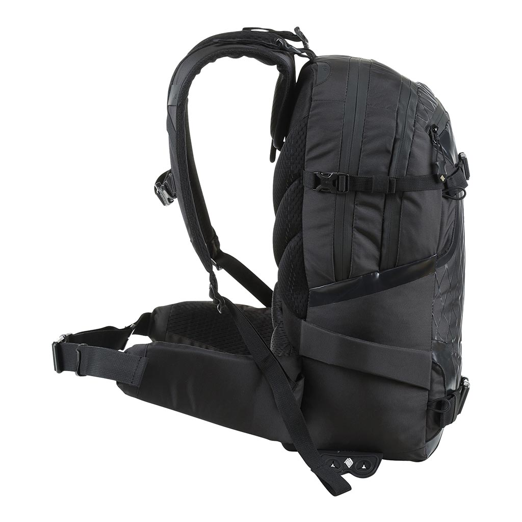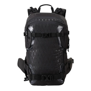 From peak to park – this bag offers it all with its vertical board carry, backcountry safety gear organisation pocket, external hiking pole stashing and gear loops, internal dry gear sleeve, fleece lined goggle sleeve, and hydration compatible capabilities. When you are snowboarding with a backpack you want the most seamless and comfortable fit, which is what we focused on here by adding the size adjustable carry system with CROSS_WINDS™ ventilation, compression straps, and The Koroyde EOP 1.0 back protector for added support, breathability, and protection from bag to body. This is our team riders dream snow pack because it has everything you need for AK lines, to weekend park days.
